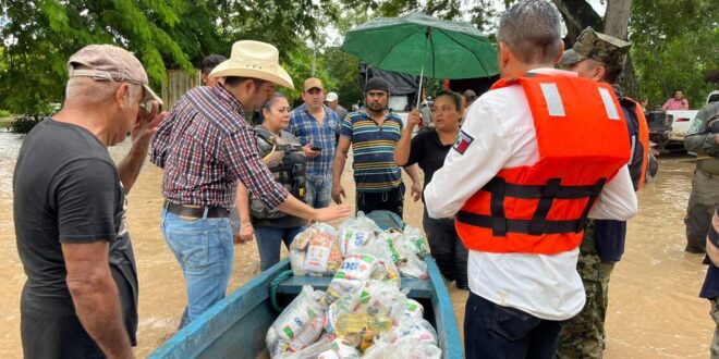 En seguimiento a las instrucciones del Gobernador del Estado, Ricardo Gallardo Cardona, este sábado continúan las labores de atención, rescate y entrega de apoyos a las más de 200 familias que habitan en la comunidad Movimiento Huasteco, en San Vicente, afectadas severamente por el desbordamiento del río Moctezuma ocurrido a 10 kilómetros de la zona habitada.